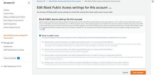 Access Analyzer for Amazon S3 is a free service powered by Amazon IAM that alerts you if Amazon S3 buckets are configured to allow access to anyone on the internet or other AWS accounts, including AWS accounts outside of your organization. Examples include: when an Amazon S3 bucket has read or write access provided through a bucket access control list (ACL), a bucket policy, a multi-region access point policy, or an access point policy. For enabling Access Analyzer for Amazon S3, you would need to create an account-level IAM analyzer for each region from the AWS IAM console.