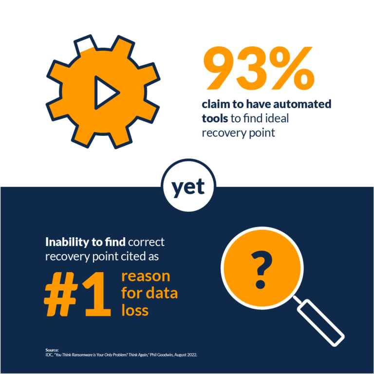 It’s clear the human element will always hold us back to some degree. While the majority of surveyed IT leaders felt they had a highly effective system, they clearly understand there is room for improvement. The No. 1 desire from survey respondents was for fully automated and non-disruptive infrastructure updates. The No. 2 ask was for greater automation and recovery orchestration from ransomware, specifically automation to find the most recent recovery point.