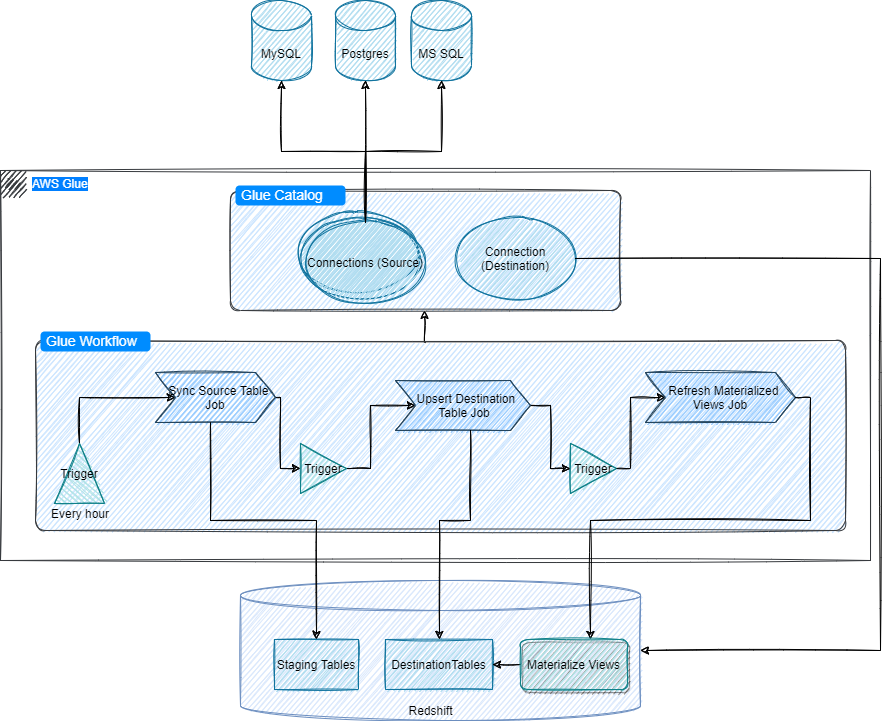 Redshift, a go-to store for warehouse solutioning in AWS, is a petabyte-scale data warehouse that can handle both structured and semi-structured data. It has materialized views that can be leveraged to create a flat list of raw data by joining multiple tables present at the central place based on some business logic. This is very useful for our use cases as views can provide fast retrieval of enriched data for downstream processing.