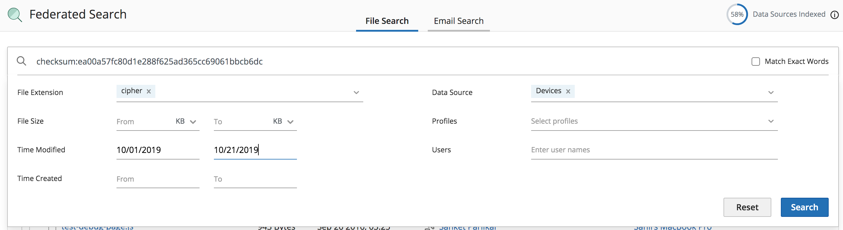 Finally, Druva captures all relevant metadata of a file and email. This means search is quick, efficient and consistent. Through a single query, it is possible to search across data sources and potentially reduce the time to investigate from days to a few seconds.