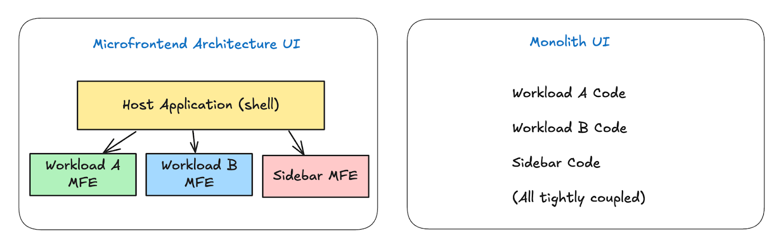 Level 2: The Core Components Microfrontend This layer houses common UI components and shared business logic that multiple workloads depend on. A good example is a specialized list component that encapsulates the business logic for API calls and user interactions. Instead of each workload team building their own list component, they can import it directly from this shared microfrontend, ensuring consistency and saving development time.