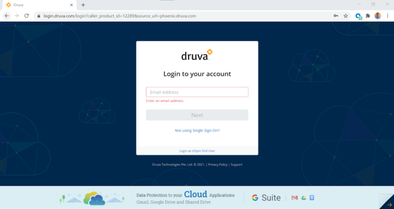 A quick login operation to the Druva console is all that is required to set up the backups.