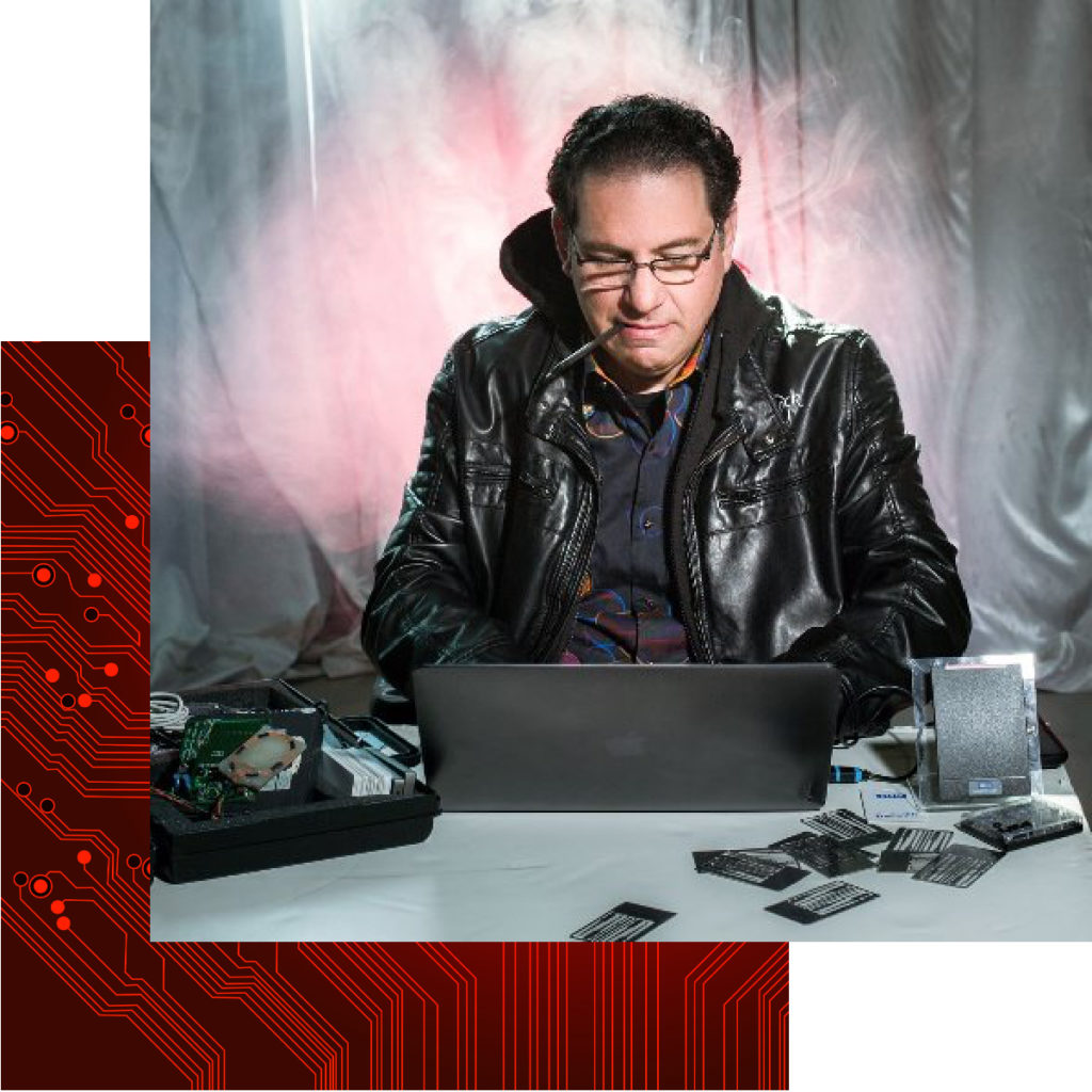 A bank with armed guards hired Mitnick to break into their data center. First, he convinced a property manager that he was interested in renting a space in the building, after which she gave him a guided tour around the building. Since he knew the building uses HID cards for security, he brought along a HID card sniffer hidden in his day planner to read and clone her card, which he later used to get into the building itself. He then hung out in the bathroom and used a long distance HID card sniffer hidden in a backpack to read HID cards of men using the restroom. He then cloned one of those cards and walked right into the data center.