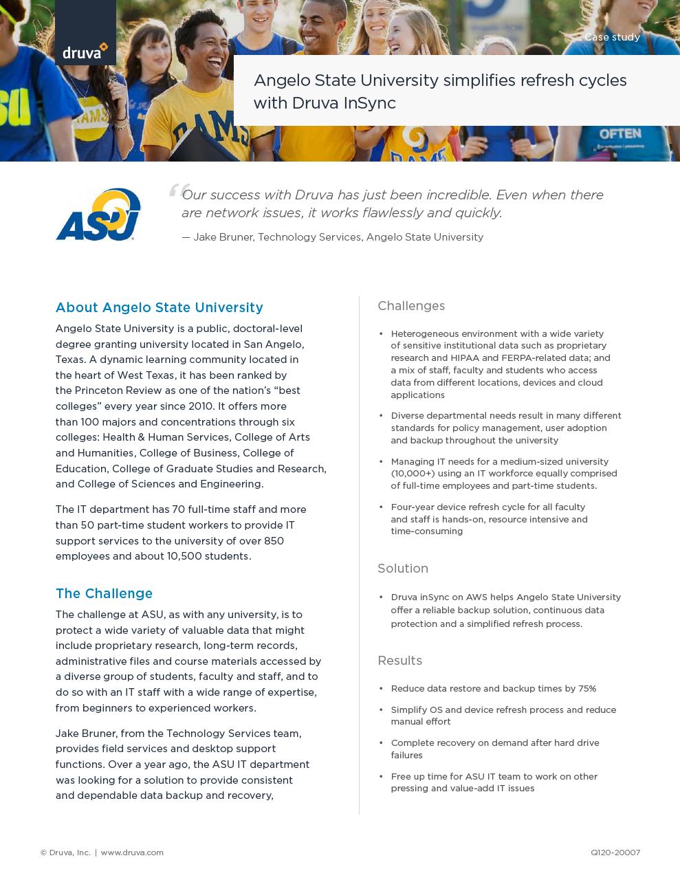 Druva helps Angelo State University offer a reliable data protection solution and modern refresh capabilities