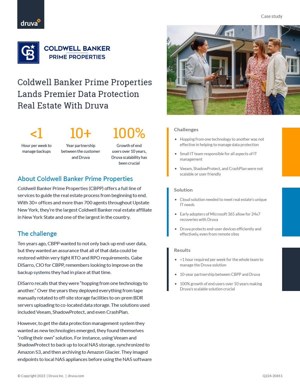 Coldwell Banker Prime Properties Lands Premier Data Protection Real Estate With Druva Data Security Cloud