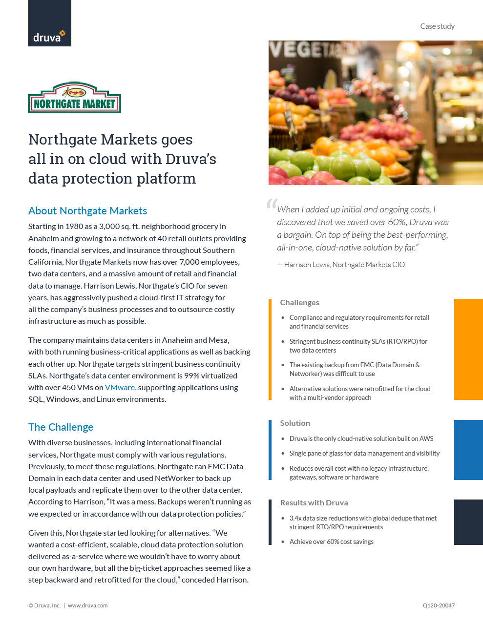 Druva reduced cloud storage by 3.4x and minimized bandwidth to meet RTO/RPO