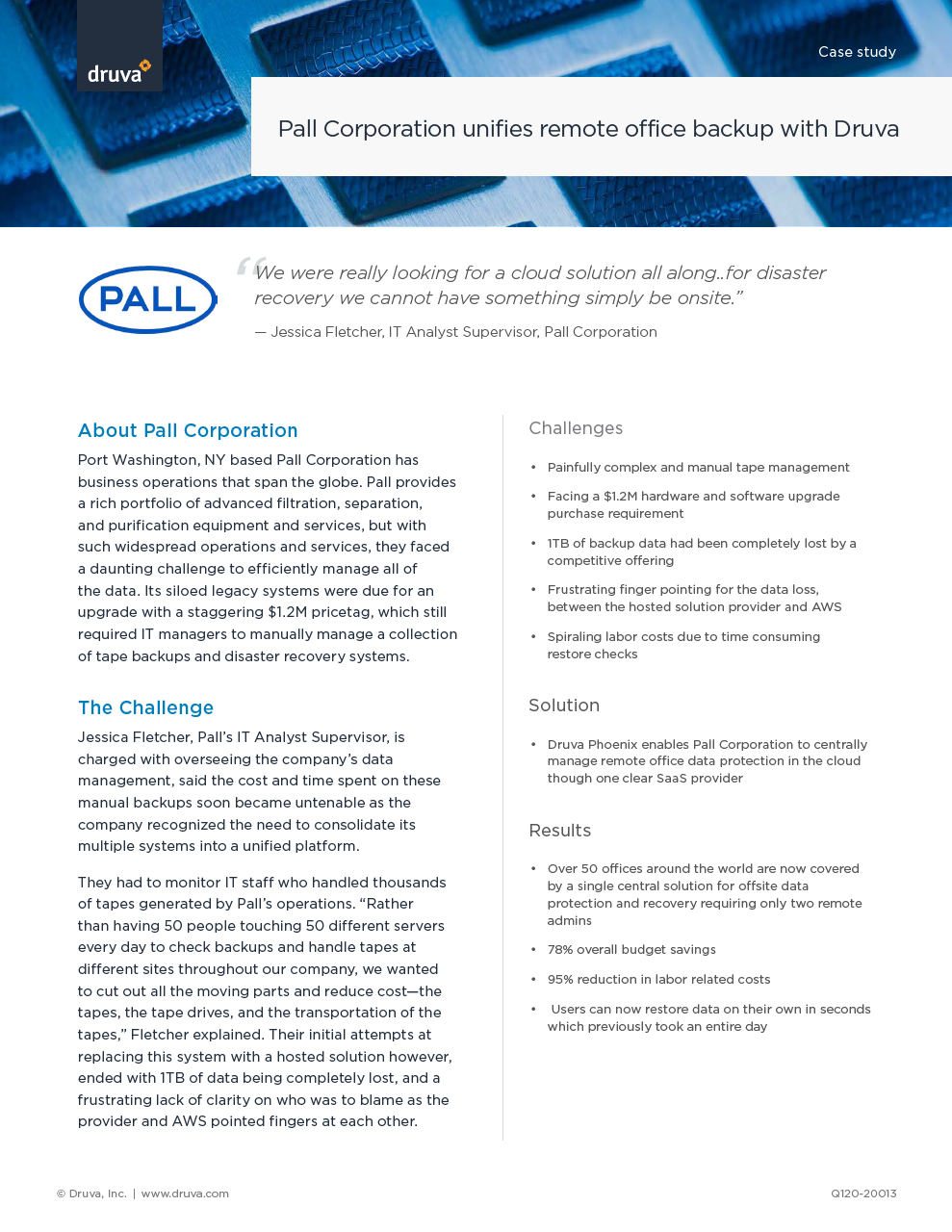 Reduced labor costs by 95%; budget savings of 78%. Restored 13 Mb files in 42 seconds