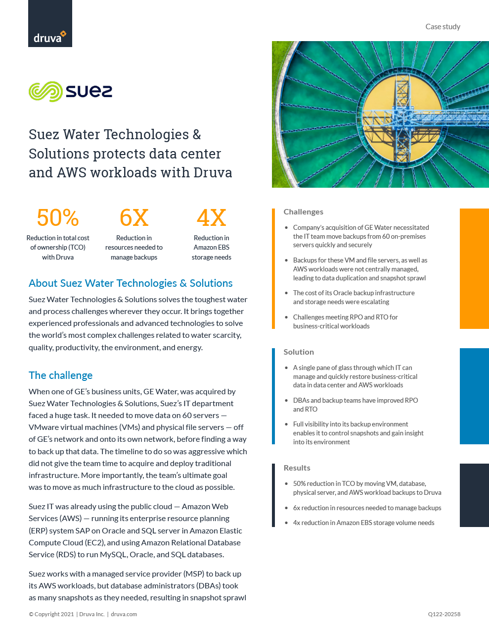 Druva enables a 50% reduction in TCO by moving VM, file server, and AWS workload backups to the cloud.