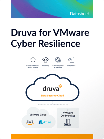 Druva’s Data Security Cloud is a cloud-native platform purpose-built for enterprise-grade backup, disaster recovery, and cyber resilience. It provides a single SaaS solution that protects workloads across VMware environments — from edge to cloud — with no infrastructure to deploy or manage.