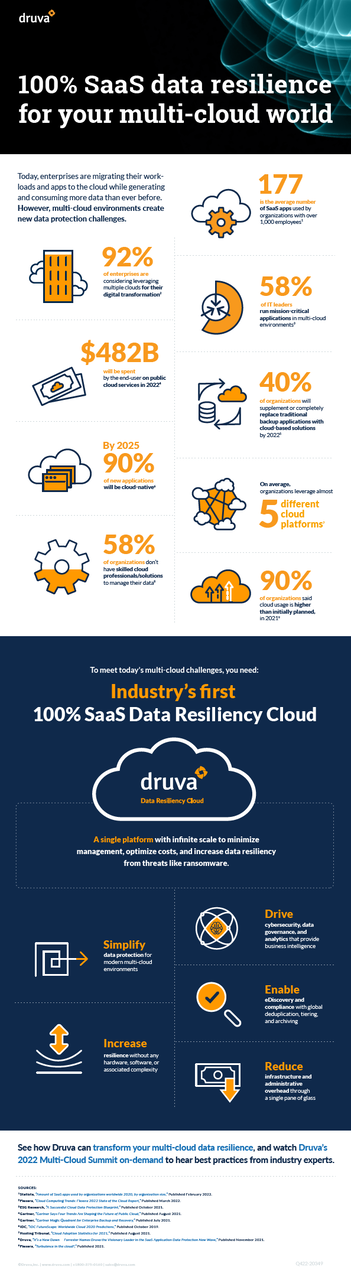 Druva delivers a single platform with infinite scale to minimize management, optimize costs, and increase data resiliency from threats like ransomware.