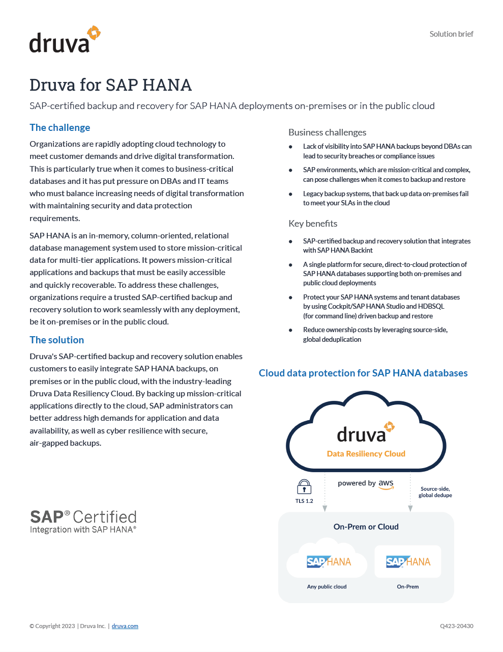 SAP-certified backup and recovery for SAP HANA deployments on-premises or in the public cloud.