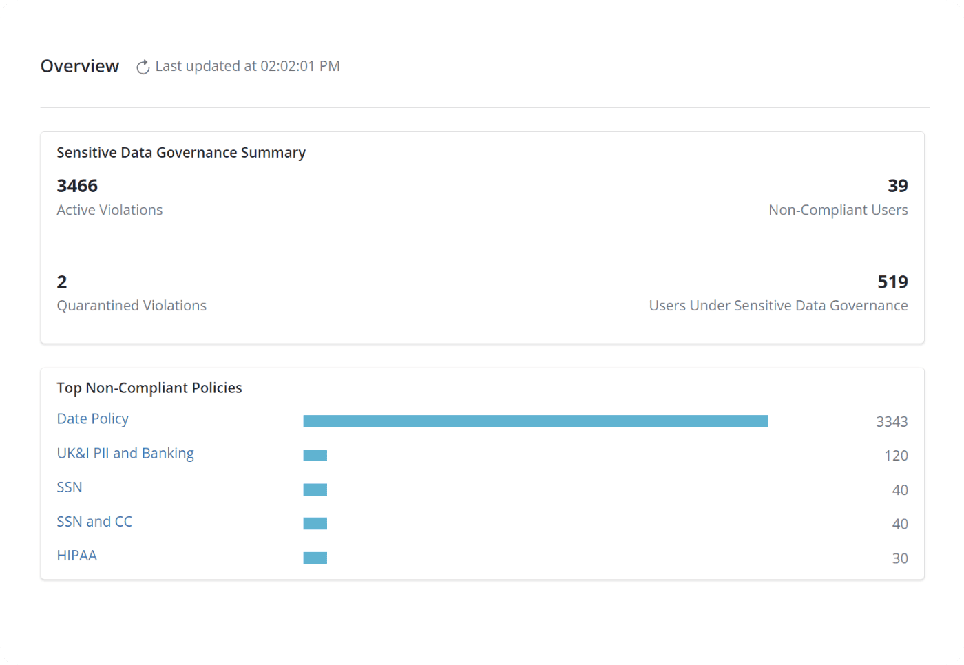 Monitor with predefined templates for major regulations (i.e GDPR, CCPA). Customize or create policy templates. Get violation alerts and take prompt action.