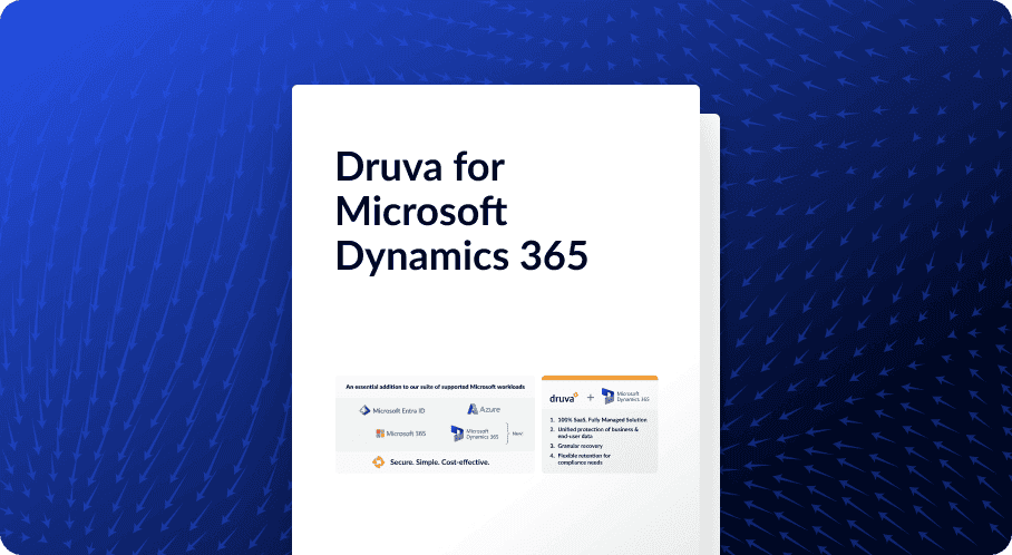 Keep your Dynamics 365 data safe with air-gapped backups in the Druva Cloud, fully isolated from threats to your primary environment.