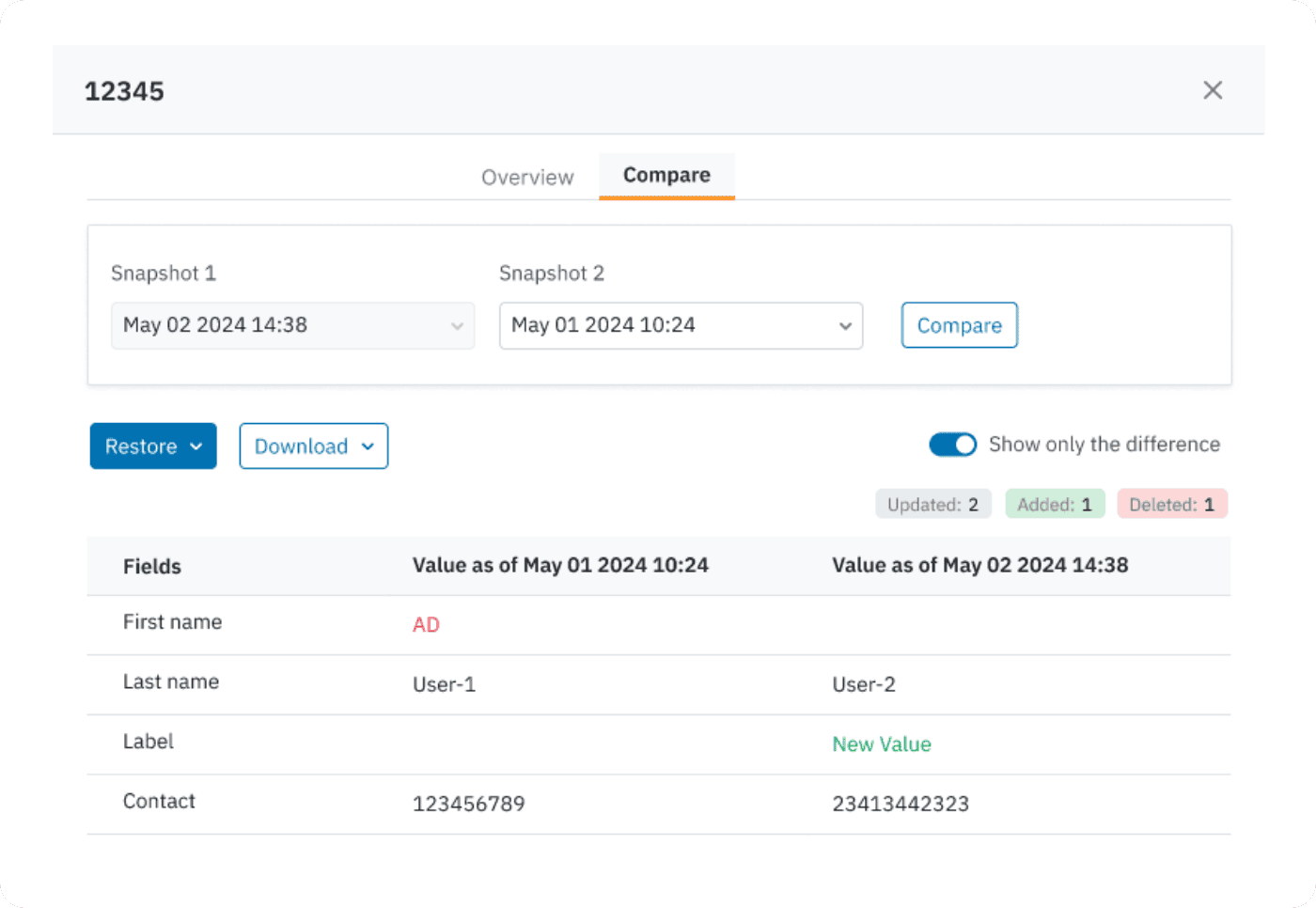 Streamline your restore process by comparing records to detect anomolies before you initiate recovery (and restore directly to production).
