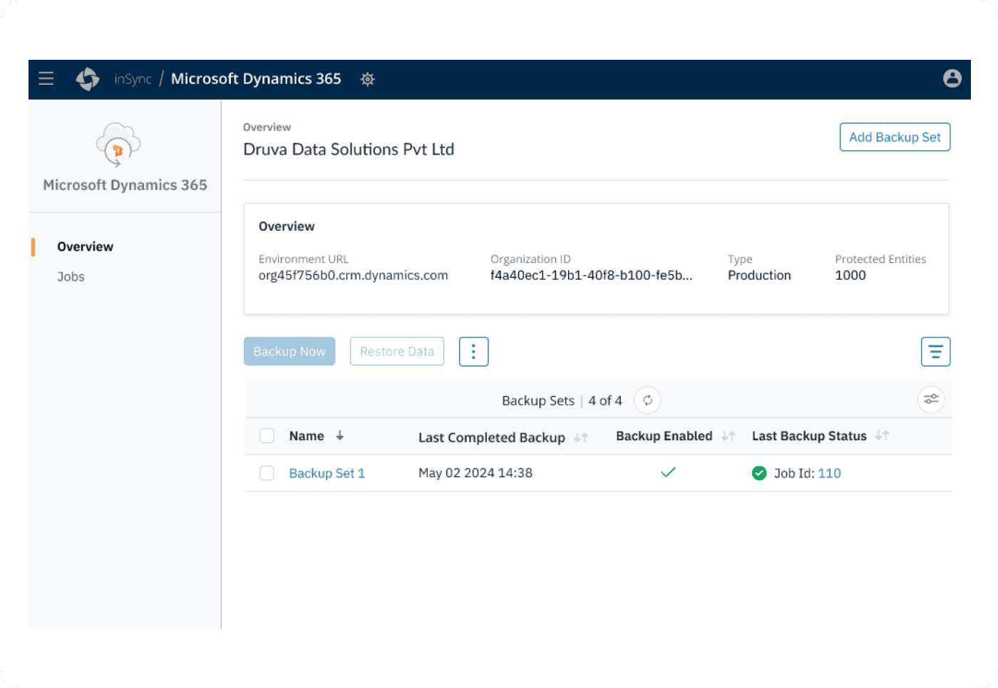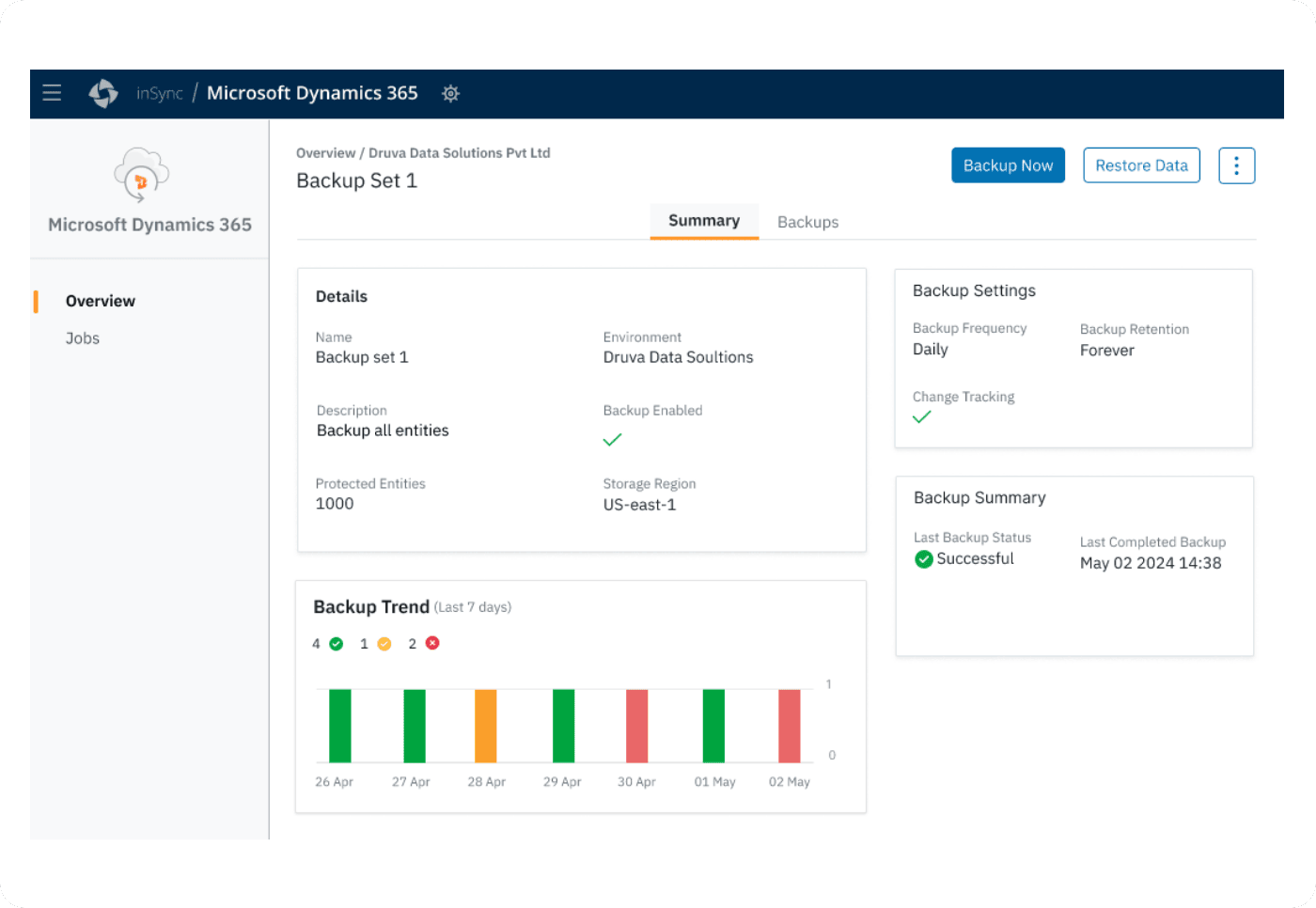 Centralize visibility for backups across regions within your Microsoft Dynamics 365 accounts, and in the Druva Cloud.