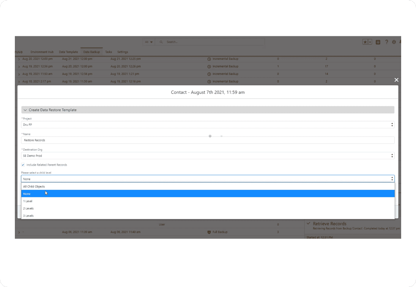 Automatically discover child records to maintain relationships during the restore process. No need for scripts or manually discovering related records.