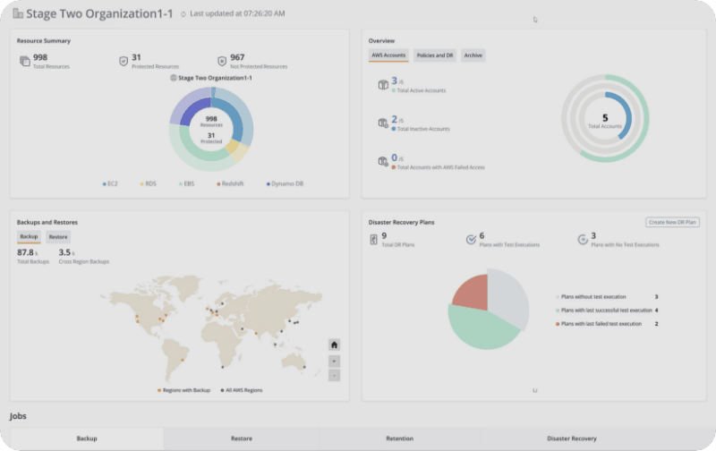 Recover clean, validated data with malware and IOC scans. Manage every AWS account, region, and workload through a single SaaS control plane that requires no agents or infrastructure.