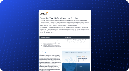 Druva provides a flexible, comprehensive platform to centrally protect and govern business-critical data across multiple SaaS applications. Built in the cloud, Druva makes it easy to discover, protect, and govern your SaaS data, wherever it resides.